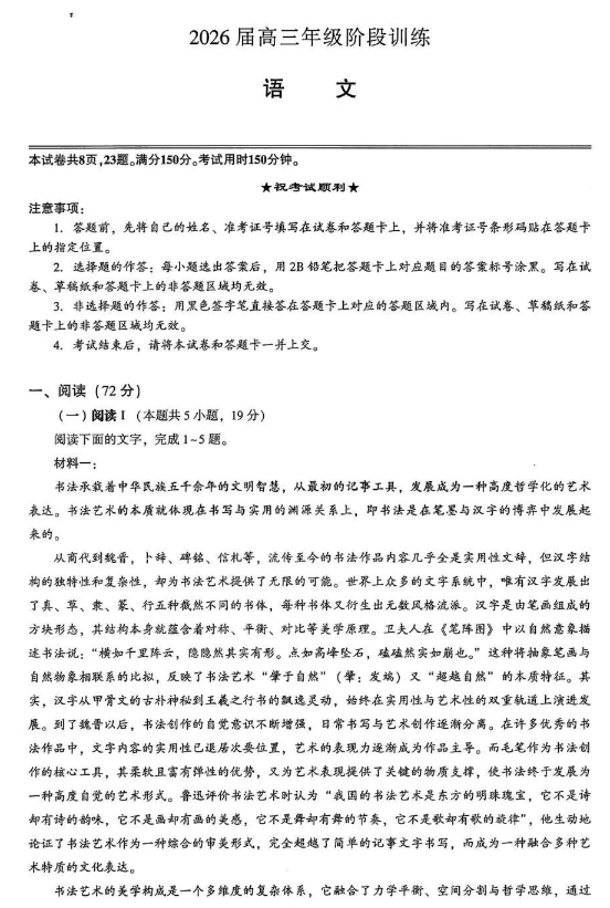 当前位置: 首页 资讯活动 2026届圆创联盟高三11月联考语文试卷+答案分享
