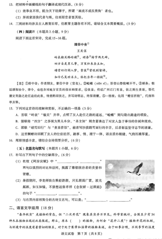 2026届圆创联盟高三11月联考语文试卷+答案分享