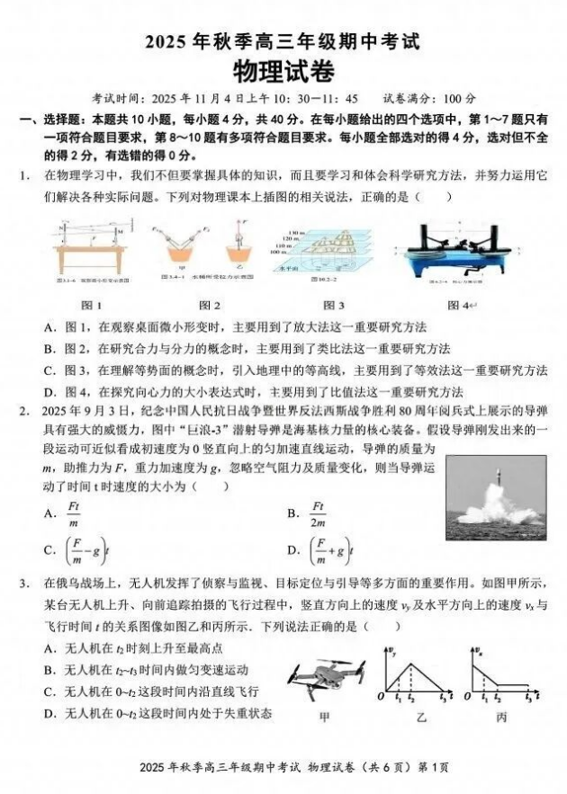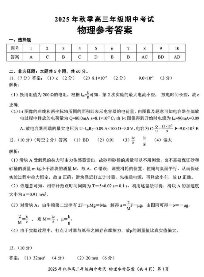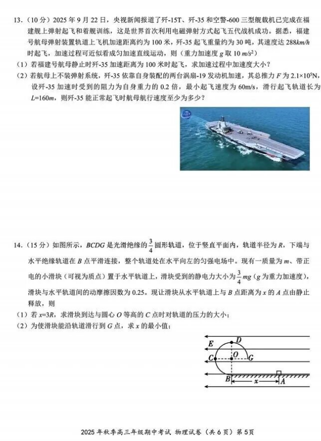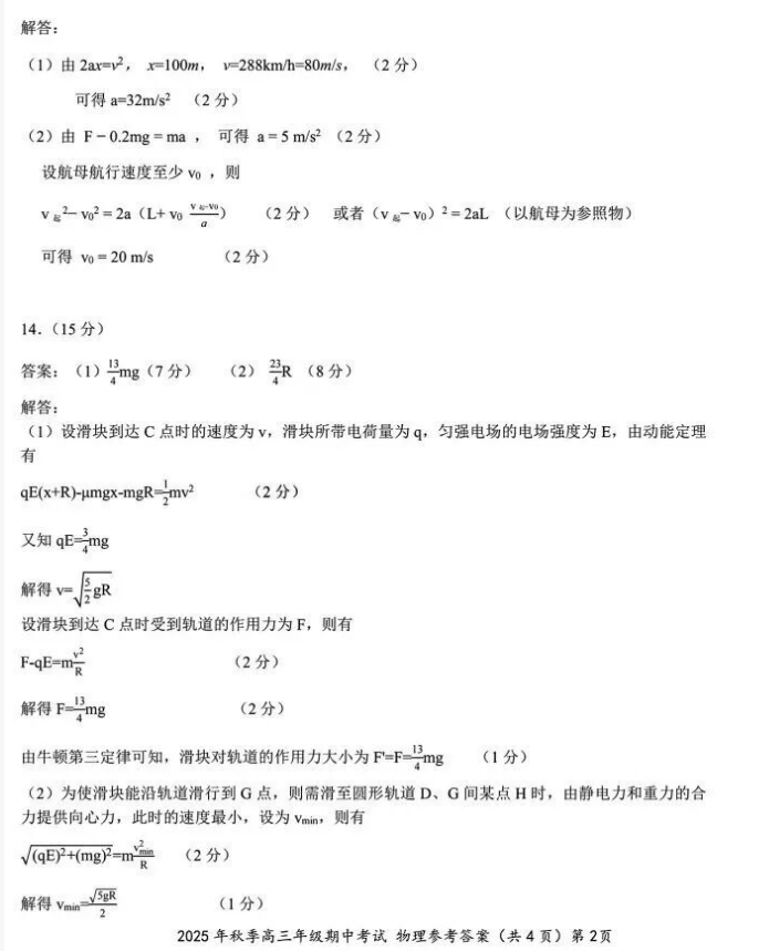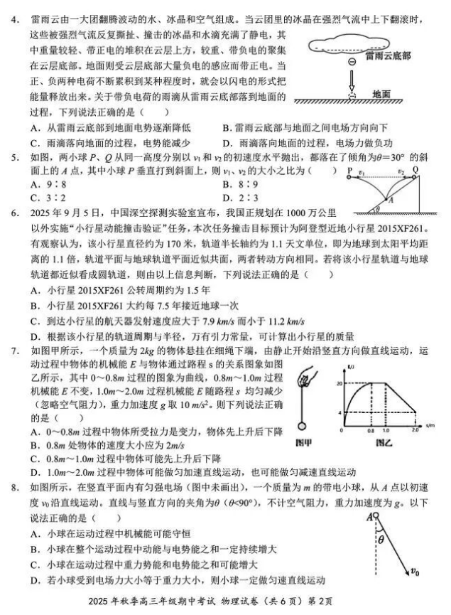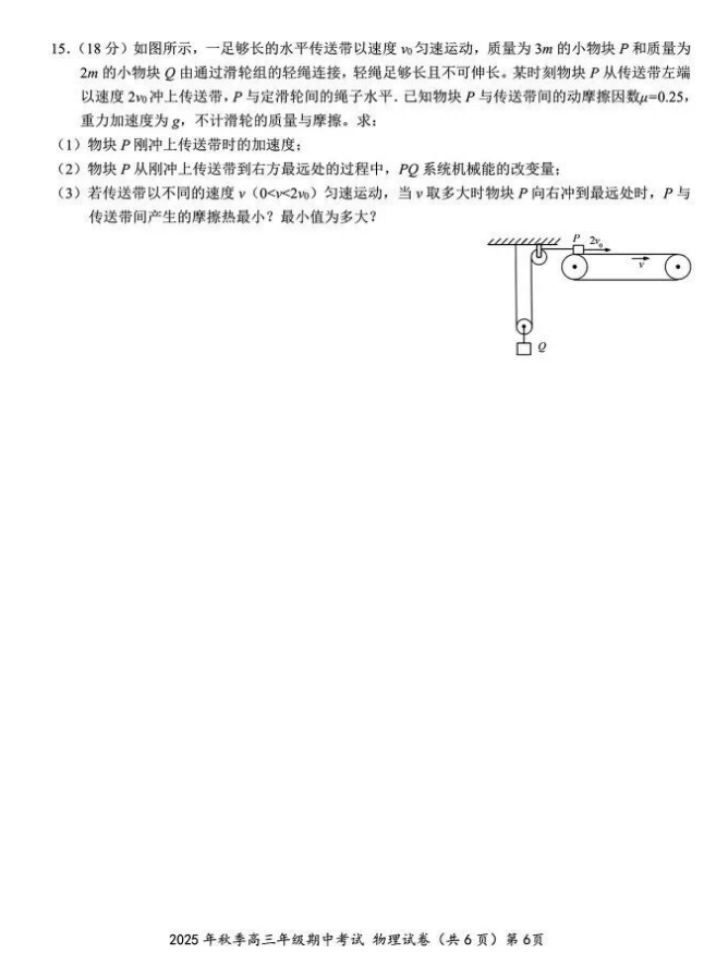 2026届湖北高三鄂东南11月3日联考物理试卷+答案