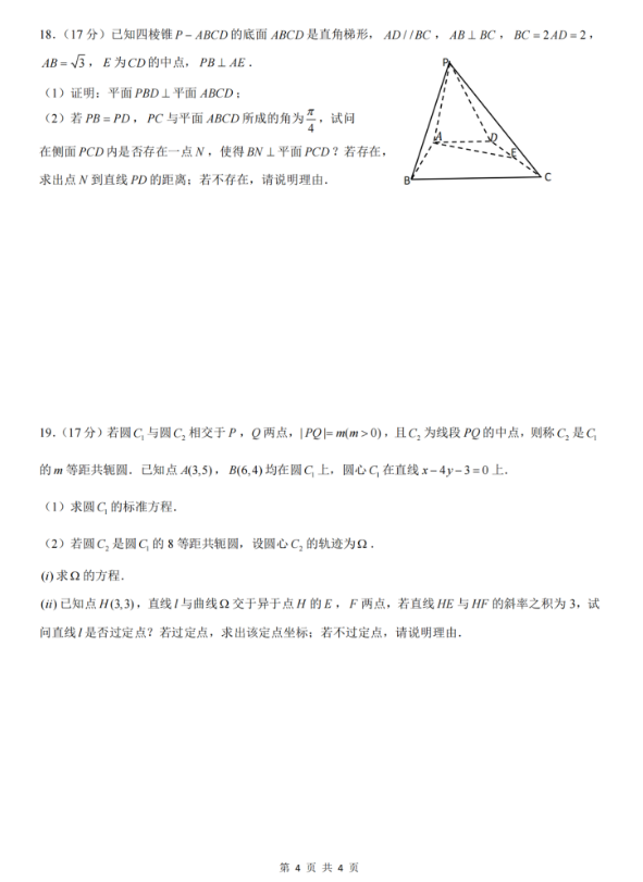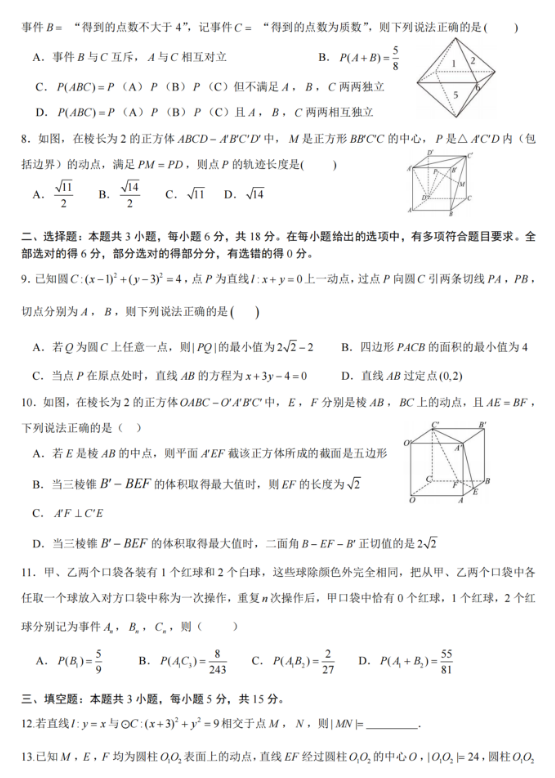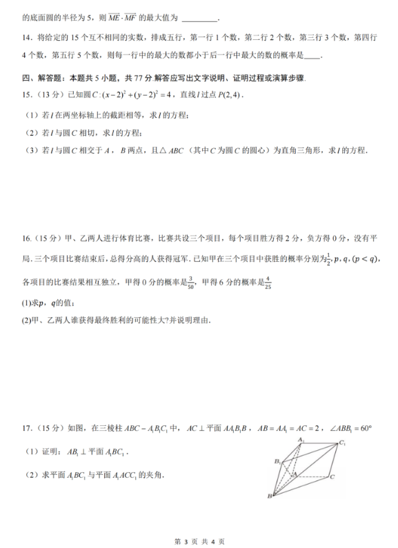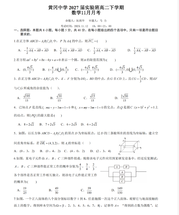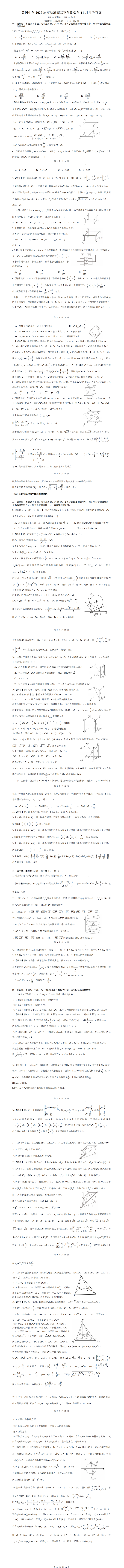 湖北省黄冈中学高二实验班下学期11月月考数学试卷