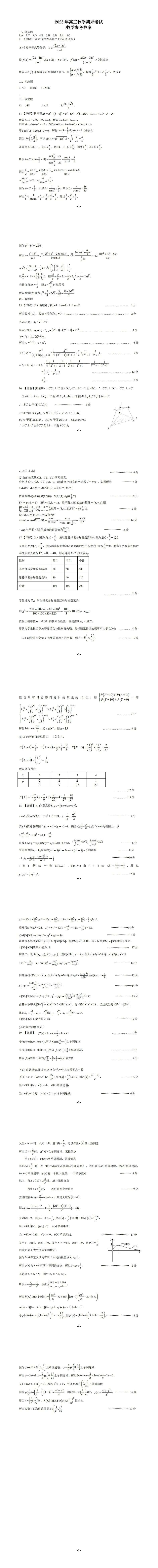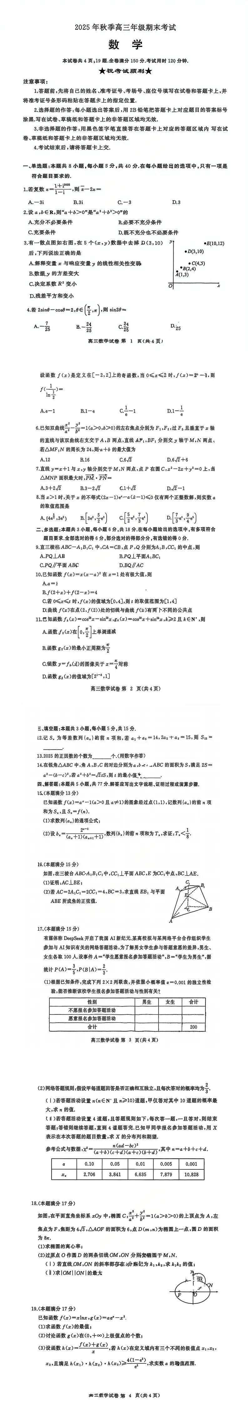 湖北省黄冈市2025年秋季高三1月数学试卷+答案