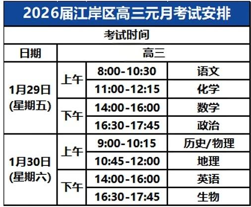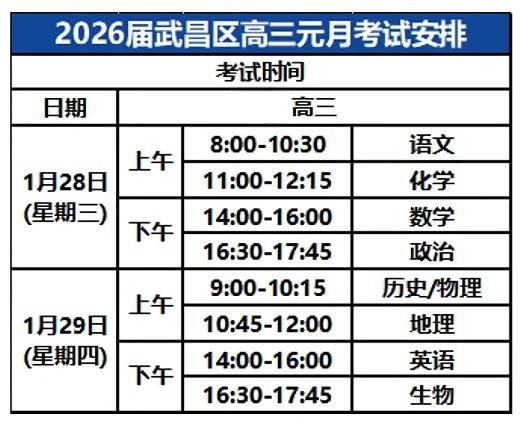 2026届武昌区、江岸区今明高三元月考试开考