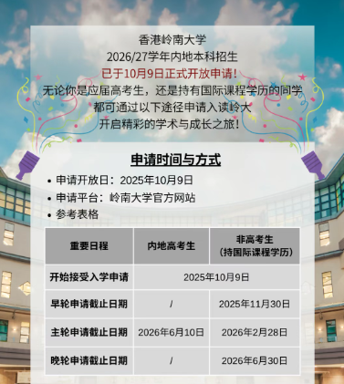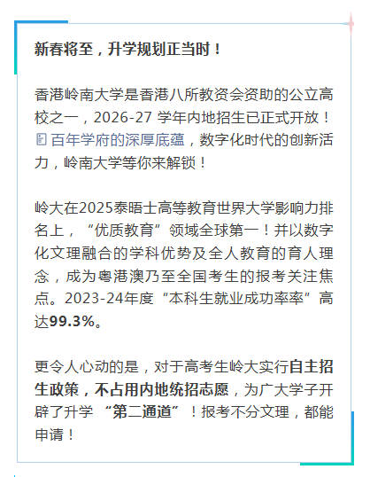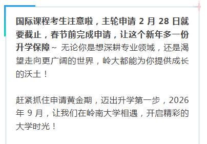 2 月 28 日截止岭南大学内地本科招生,自主招生不占统招志愿!