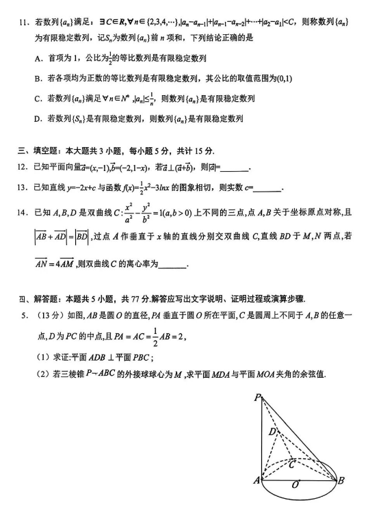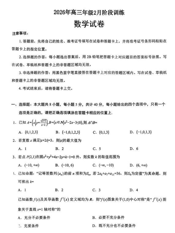 2026届高三2月考试卷云学联盟数学试卷